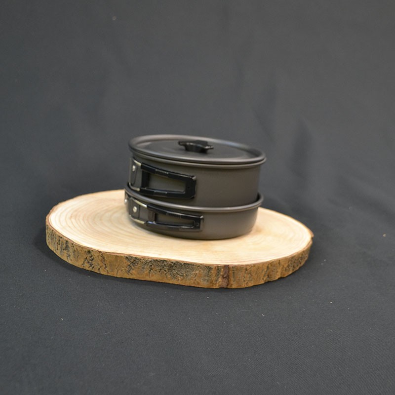 Notre set de cuisine contient une bouilloire, une poêle et une casserole avec couvercle. Il convient parfaitement pour les plats préparés pour 2 personnes des « Boxs culinaires »